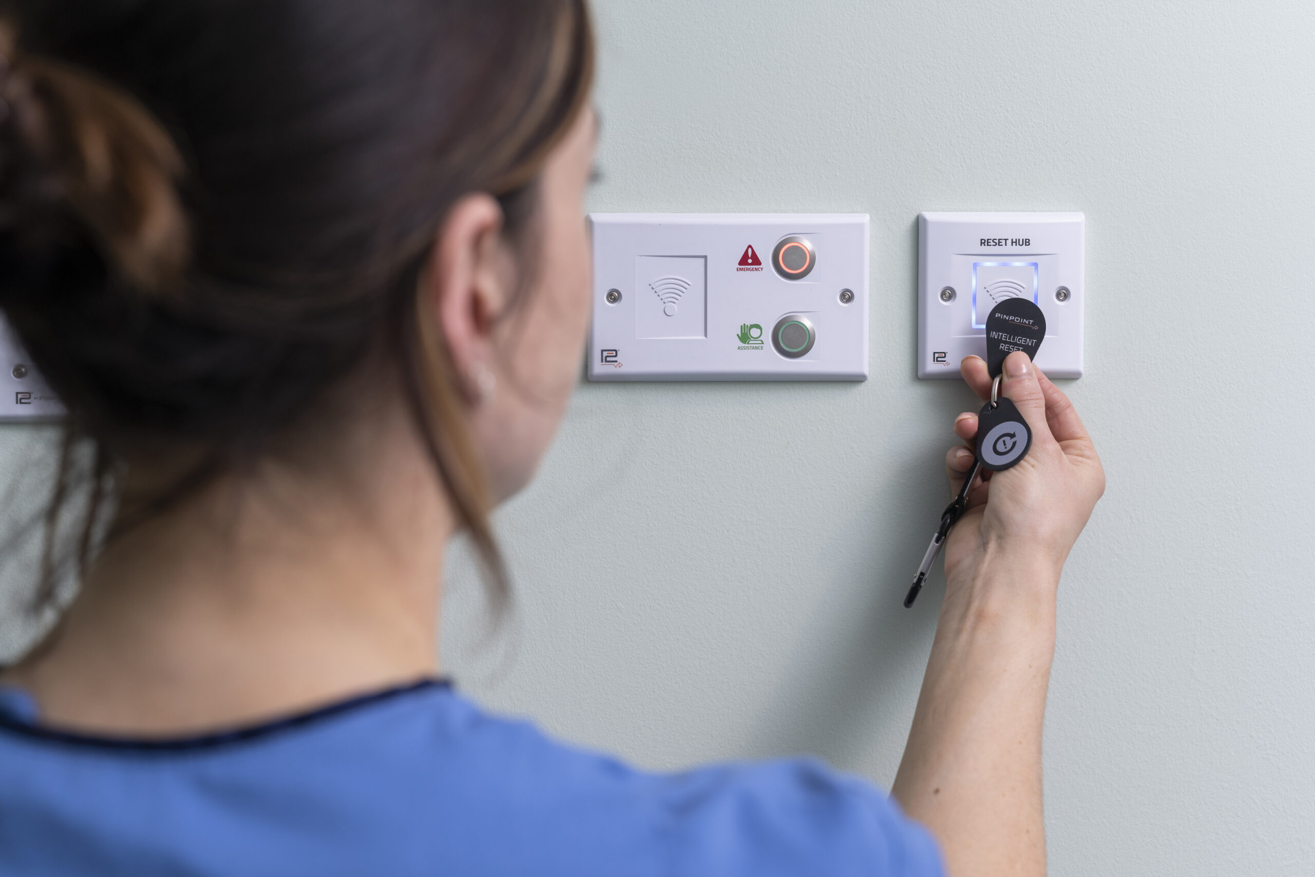 The P2 Fob is a light and unobtrusive device that is worn throughout a shift. Its discreet, lightweight design minimises disturbances to staff members.